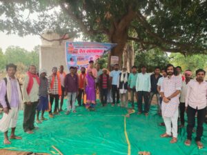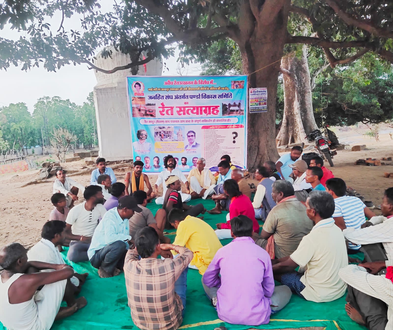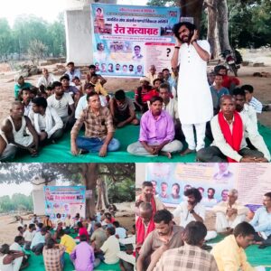 भारी जनसमूह ग्रामीण जनता जनहित संघ के केंद्रीय उपाध्यक्ष के नेतृत्व में सत्य के लिए आग्रह करने बैठे ‘रेत सत्याग्रह’ में