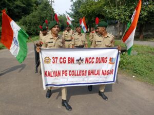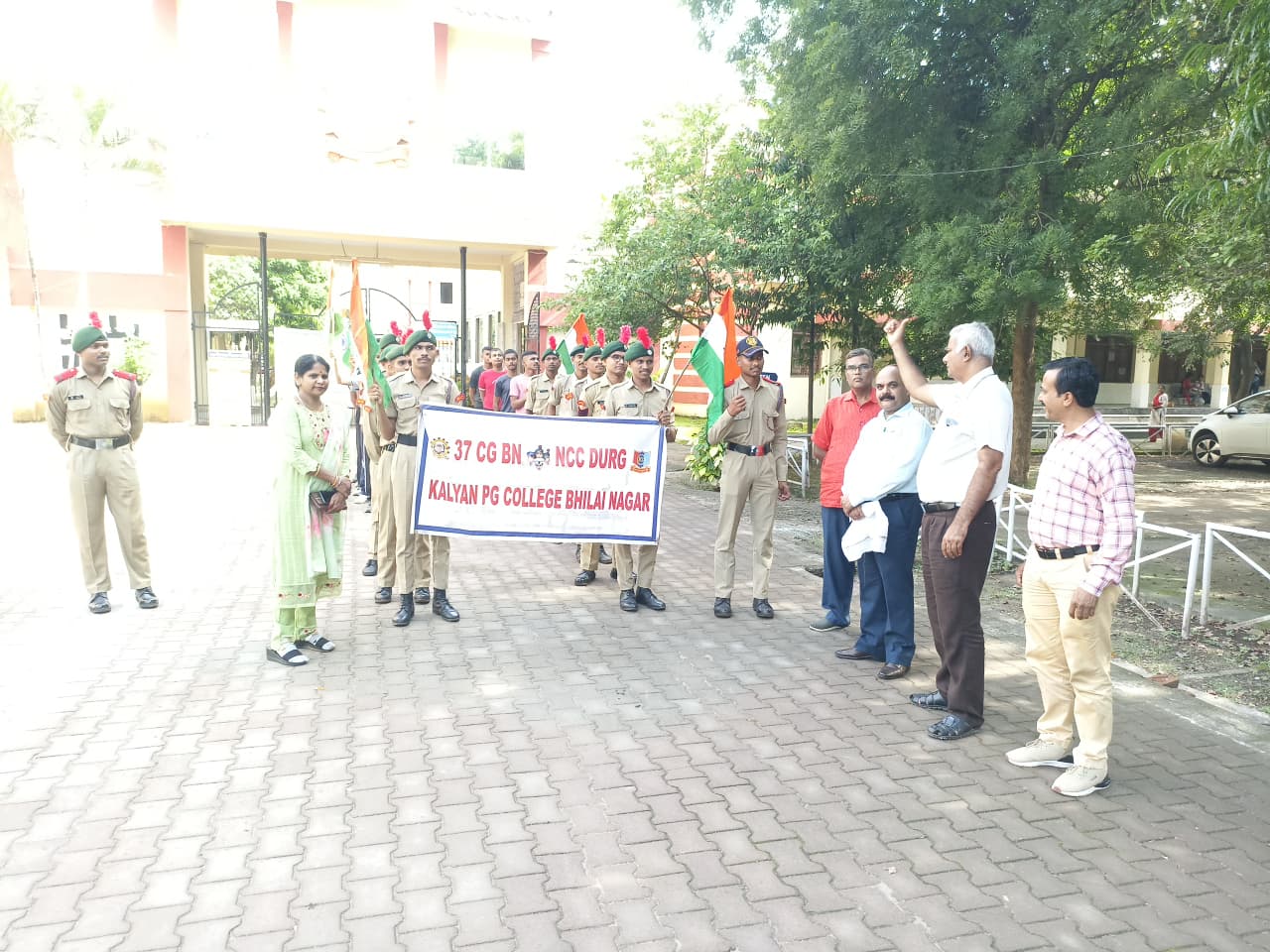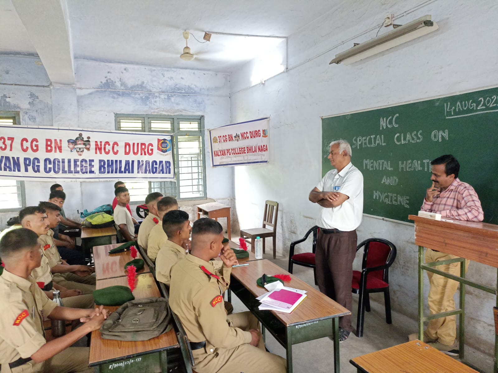 दुर्ग।भिलाई नगर 37 छग बटालियन एनसीसी के कमान अधिकारी व एडम अफसर के निर्देशानुसार आज कल्याण स्नातकोत्तर महाविद्यालय भिलाई नगर के एनसीसी इकाई ने मानसिक स्वास्थ्य एवं स्वच्छता विषय पर व्याख्यान माला का आयोजन कर तिरंगा रैली का आयोजन किया। व्याख्यान माला में विषय विशेषज्ञ गर्ल्स एनसीसी अधिकारी ले० डॉ०के० नागमणि जो कल्याण स्नातकोत्तर महाविद्यालय भिलाई नगर में 6 वर्षों से मानसिकत स्वास्थ्य के परामर्शदात्री भी हैं ने कैडेटों को शारीरिक, मानसिक स्वास्थ्य के साथ सामाजिक स्वास्थ्य पर भी विस्तृत चर्चा की इसके पश्चात दूसरे विषय विशेषज्ञ के रूप में पूर्व एनसीसी कैडेट रूपेश कुमार दुबे जो छत्तीसगढ़ में वेलनेस कोच भी है ने कैडेटों को बताया कि किस प्रकार हमारे खानपान का प्रभाव हमारे शरीर व मन पर पड़ता है अतः हम अपने शारी