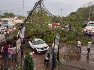 दुर्ग बस स्टैंड के पास कार के ऊपर गिरा पेड़ यातायात बाधित