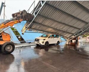 छत्तीसगढ़ में आंधी-तूफान मचाया कहर रायपुर में शेड गिरने से गाड़ियां दबी, इधर सिमगा टोल गेट हुआ धराशायी, और दुर्ग बस स्टैंड में जड़ से उखाड़ कर पेड़ गिरा कार पर कर चकनाचूर,