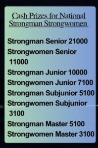जिसमें सीनियर स्ट्रांग पुरुष एवं महिला नेशनल खिलाड़ी का नगद पुरस्कार इस प्रकार था