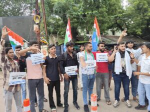 PWD विभाग की भर्ती परीक्षा धांधली को लेकर विरोध में CM साय का दुर्ग NSUI ने किया पुतला दहन