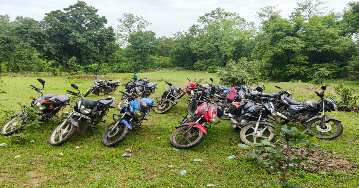 कोरबा के जंगलों में टेंट लगाकर जुआ की महफिल सजाए 15 जुआरी गिरफ्तार , 18 बाइक और नकदी बरामद