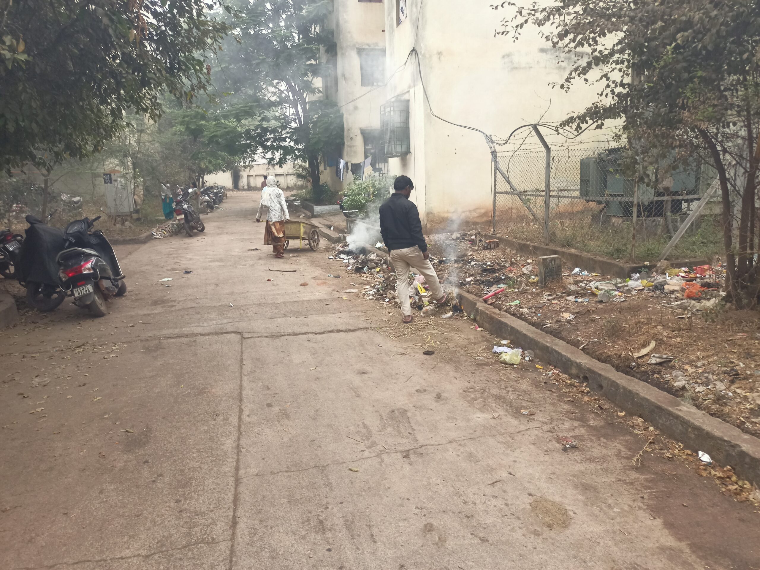 रिसाली निगम की ‘थूक-पॉलिश’ सफाई: तालपुरी पारिजात में सड़कों पर कचरा, नालियों में लगाई जा रही आग