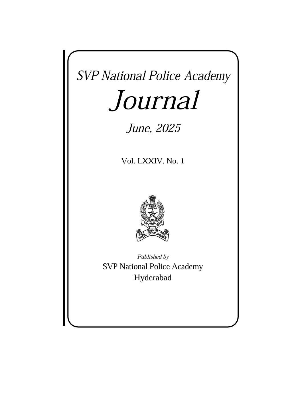 👉 सरदार वल्लभभाई पटेल राष्ट्रीय पुलिस अकादमी (SVPNPA), हैदराबाद की प्रतिष्ठित पत्रिका में शोध लेख प्रकाशित।