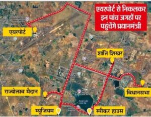 प्रधानमंत्री इसके बाद शांति शिखर मंदिर हसौद टर्निंग से विधानसभा भवन जाएंगे और फिर ट्राइबल म्यूजियम सेक्टर-24 जाएंगे। इस दौरान आसपास की चारों सड़कों पर यातायात रोका जाएगा।