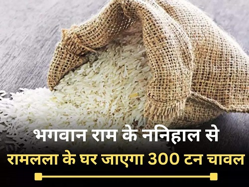 छत्तीसगढ़ प्रदेश राइस मिलर्स एसोशिएशन के अध्यक्ष योगेश अग्रवाल ने बताया कि छत्तीसगढ़ को यह अवसर मिल रहा है. यह बहुत गौरव की बात है कि आगामी 22 जनवरी को भगवान राम लला का प्राण प्रतिष्ठा अयोध्या में होने वाला है. छत्तीसगढ़ भगवान राम का मामा पक्ष है. छत्तीसगढ़ भगवान श्रीराम का ननिहाल है इसलिए छत्तीसगढ़ से मायरा स्वरूप 300 टन चावल अयोध्या भेजा जाएगा. मुख्यमंत्री विष्णुदेव साय राजधानी स्थित राम मंदिर से 11 ट्रैकों को हरी झंडी दिखाकर रवाना करेंगे। यानी छत्तीसगढ़ का सुगंधित चावल की खुशबू पूरे अयोध्या में फैलने वाली है 30 लाख से ज्यादा लोग छत्तीसगढ़ के चावल का स्वाद लेंगे ।