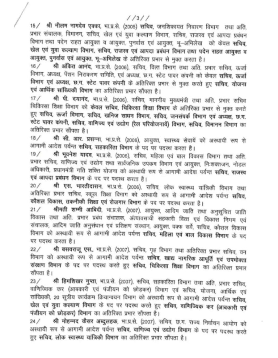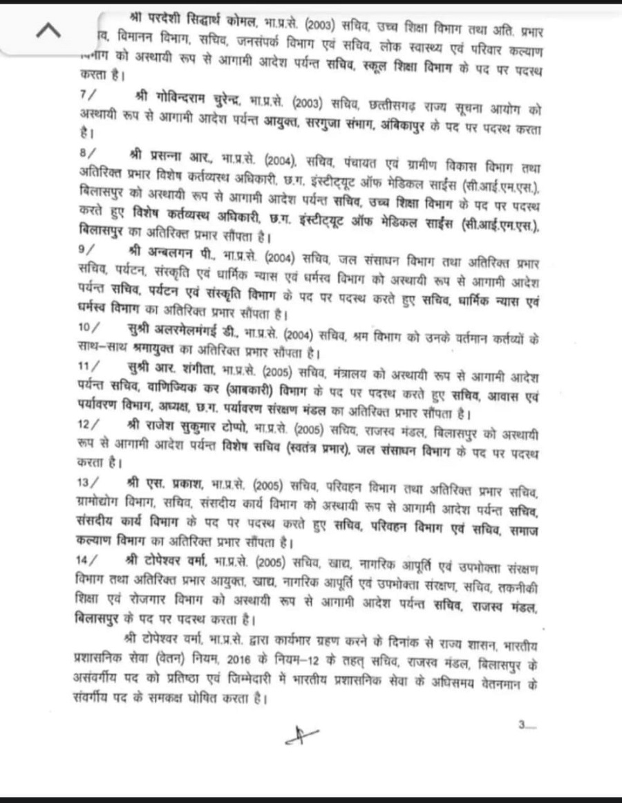 छत्तीसगढ़ सरकार ने रात को 1 बजे के लगभग बहुप्रतिक्षित ट्रांसफ़र सूची जारी की है।