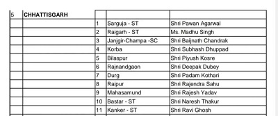 बिलासपुर लोकसभा के लिए पीयूष कोसरे, राजनांदगांव लोकसभा के लिए दीपक दुबे, दुर्ग लोकसभा पदम कोठारी, महासमुंद लोकसभा के लिए राजेश यादव, बस्तर लोकसभा (एसटी) नरेश ठाकुर, कांकेर लोकसभा (एसटी) के लिए रवि घोष को नियुक्त किया गया है.
