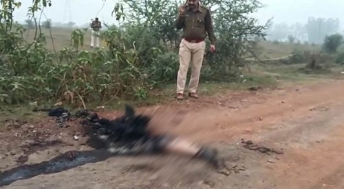 सड़क किनारे मिली महिला की अधजली लाश, इलाके में फैली सनसनी, जांच में जुटी पुलिस