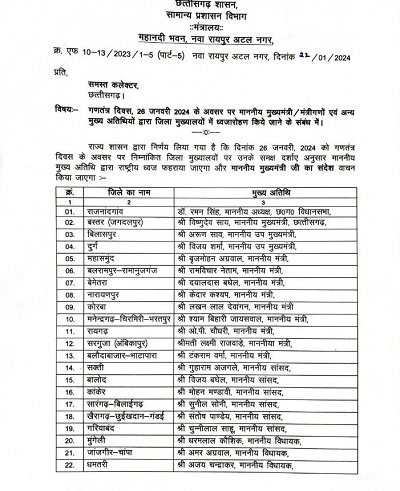 छत्तीसगढ़ में गणतंत्र दिवस के दिन ध्वजारोहण का शेड्यूल जारी, जानें- सीएम और विधायक कौन-कहां फहराएंगे झंडा