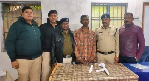दुर्ग- रामगोपाल गर्ग (भा.पु.से.) वरिष्ठ पुलिस अधीक्षक महोदय दुर्ग के निर्देशन में श्री अभिषेक झा (रापुसे) अति. पुलिस अधीक्षक महोदय (शहर) दुर्ग एवं श्री मणीशंकर चन्द्रा (रा.पु.से.) नगर पुलिस अधीक्षक महोदय दुर्ग, के मार्गदर्शन में एवं विजय यादव थाना प्रभारी मोहन नगर दुर्ग के नेतृत्व में चाकू बाजो, असामाजिक तत्वों के विरूद्ध लगातार कार्यवाही की जा रही है। इसी क्रम में दिनांक 23.01.2024 को मुखबिर से सूचना मिली कि कातुलबोर्ड रोड सिधिया नगर मोड के पास रोड मे शादी पार्टी में आने जाने वाले लोगो को एक व्यक्ति अपने हाथ में लोहे का धारदार चाकू लेकर लहराकर आने जाने वाले लोगो को डरा धमका रहा है। सूचना तस्दीक हेतु तत्काल पुलिस पार्टी घटना स्थल के लिए रवाना की गई मुखबीर के बताये हुए स्थान कातुलबोर्ड रोड सिंधिया नगर मोड के पास पहुंचने पर एक व्यक्ति धारदार चाकू को लहराते हुए लोगों को डराते धमकाते मिला जो पुलिस पार्टी को देखकर भागने लगा जिसे घेराबंदी कर दौड़ाकर पकड़ा गया। जिससे नाम पता पूछने पर अपना नाम विशाल कुमार डोकरा उर्फ विशाल बाघे पिता राजेश डोकरा उम्र 22 साल साकिन सेक्टर 07, सडक 21, क्वाटर नंबर 2बी, भिलाई नगर जिला दुर्ग का रहने वाला बताया। आरोपी के कब्जे से एक प्रतिबंधित आकर के धारदार लोहे का चाकू एवं तलाशी दौरान आरोपी के कमर भाग में छुपाकर रखे एक लोहे का हथौडा व लोहे के राड को जप्त कर आरोपी को विधिवत गिरफ्तार किया गया। आरोपी के विरूद्ध 25, 27 आर्म्स एक्ट अतंर्गत अपराध कायम कर विवेचना में लिया गया है। गिरफ्तार आरोपी को न्यायिक रिमाण्ड पर भेजा गया है।