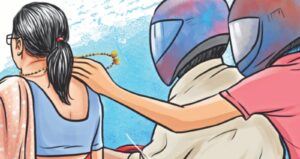 राह चलती महिला से दिनदहाड़े सोने की चेन लूट ले गए बाइक सवार बदमाश।